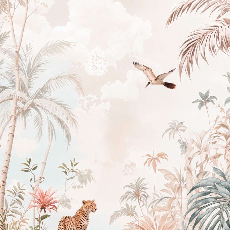 Habillez vos murs d'un beau papier peint facile à poser 100% Made in France sur le thème de la jungle.