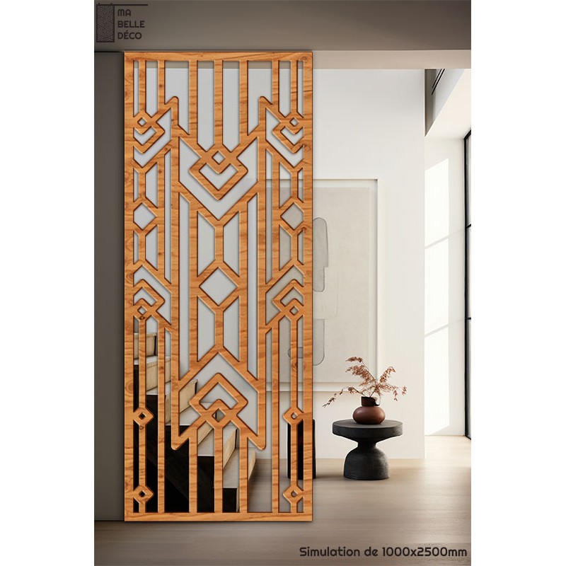 Claustras motif Artémis déco sur-mesure avec des matériaux pour l'intérieur en bois et l'extérieur en PVC ou Dibond.
