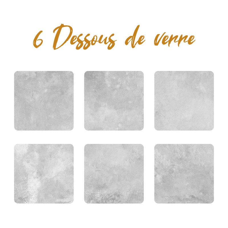 6 dessous de verre imprimés au motif Béton.